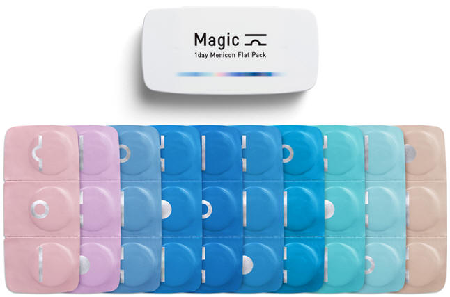 メニコン「MAGIC」はカードのようなパッケージを開くと、あなたにうれしい新設計。コンタクトレンズをスムーズに取り出せるから、指がレンズの内面に触れにくくなります。